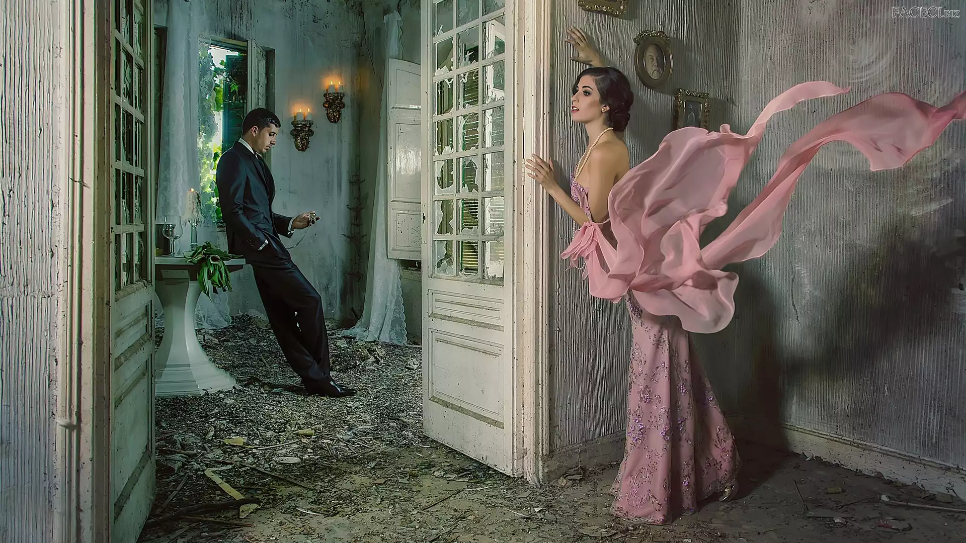 Mężczyzna, Drzwi, Zaniedbane, Różowa, Suknia, Wnętrza, Kobieta - faceci.biz